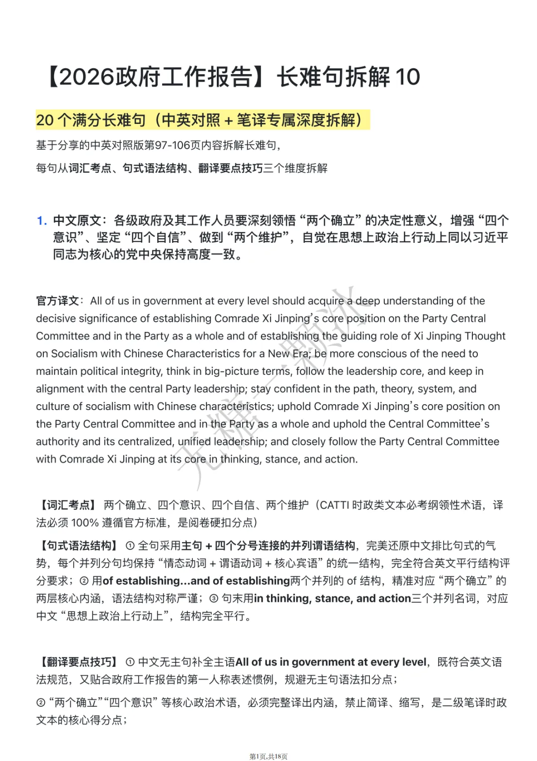 20 个满分长难句(中英对照 + 笔译专属深度拆解)