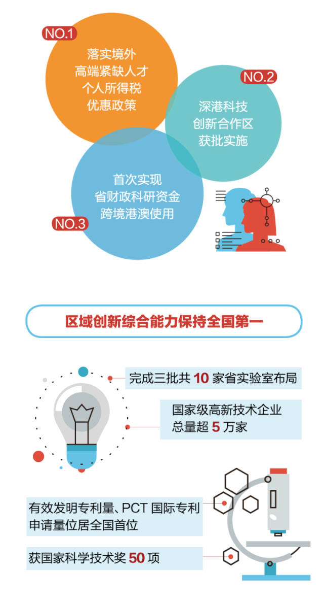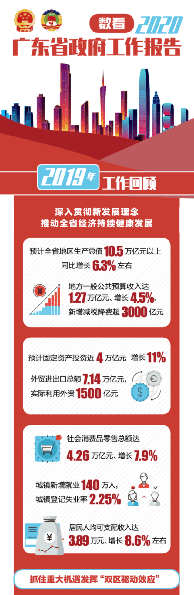 报告原文:深入推进粤港澳大湾区建设,支持深圳先行示范区建设和广州实现老城市新活力,加快构建“一核一带一区”区域发展新格局。