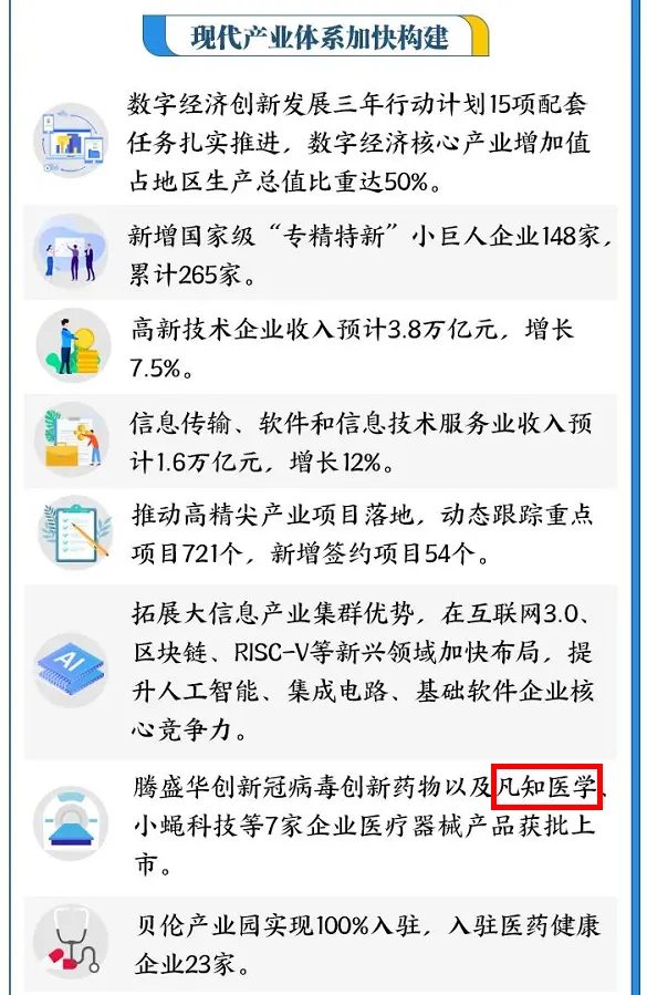 图 | “北京海淀”公众号北京市海淀区是全国经济体量最大的市辖区,也是全国科技创新中心核心区,拥有高等院校、科研院所、科创机构等创新资源,成就了1万多家高新技术企业,高精尖产业集聚优势突出。凡知医学此次能脱颖而出,登上海淀区政府工作报告,实属荣幸。