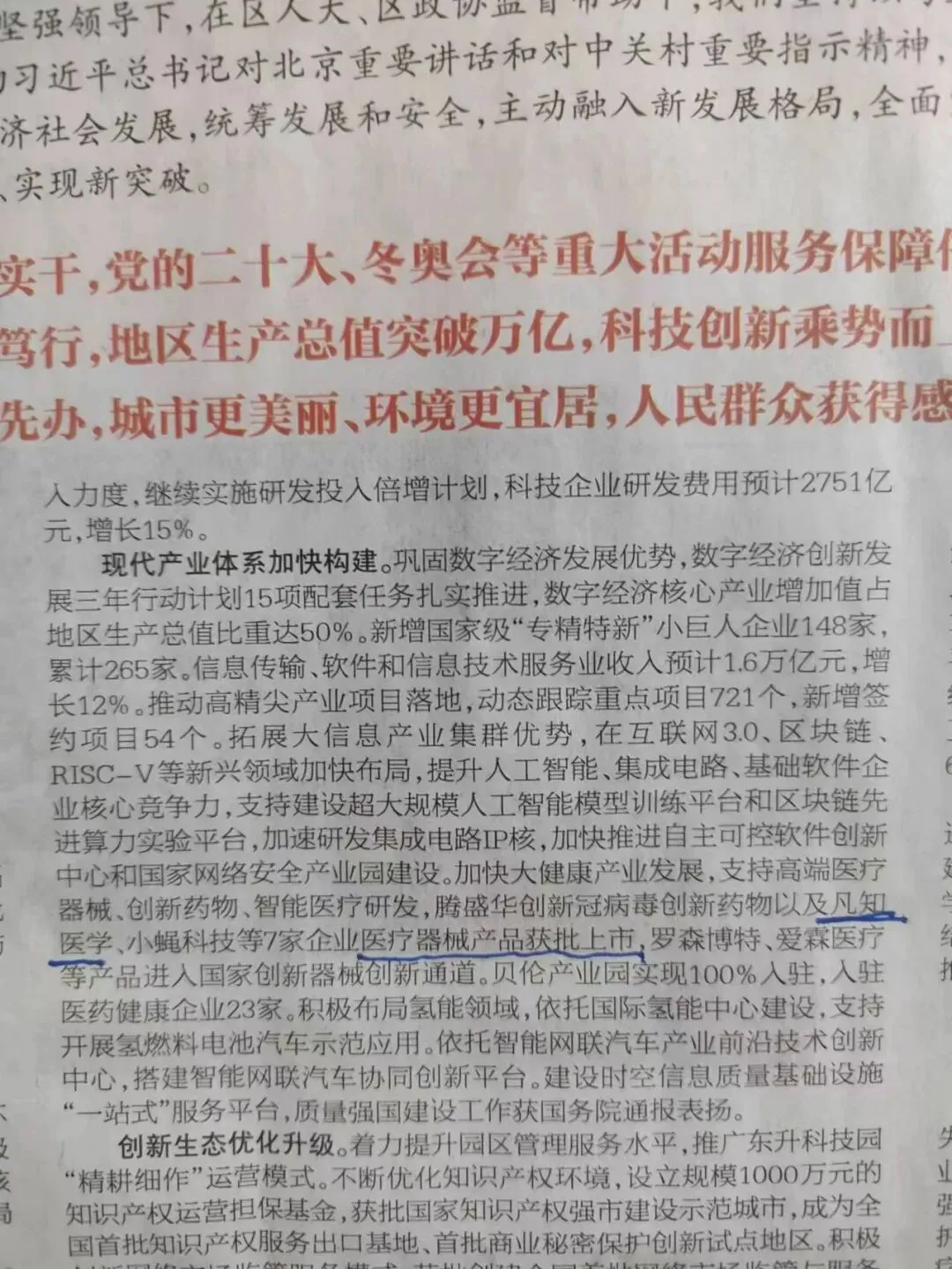 2023年1月4日,海淀区十七届人大三次会议开幕,区委副书记、区长李俊杰作政府工作报告,系统回顾了过去一年来海淀建设发展成就,并对未来发展目标和2023年工作任务进行了谋篇布局。北京凡知医学科技有限公司的发展成果,荣登李俊杰区长所作的《海淀区政府工作报告》。