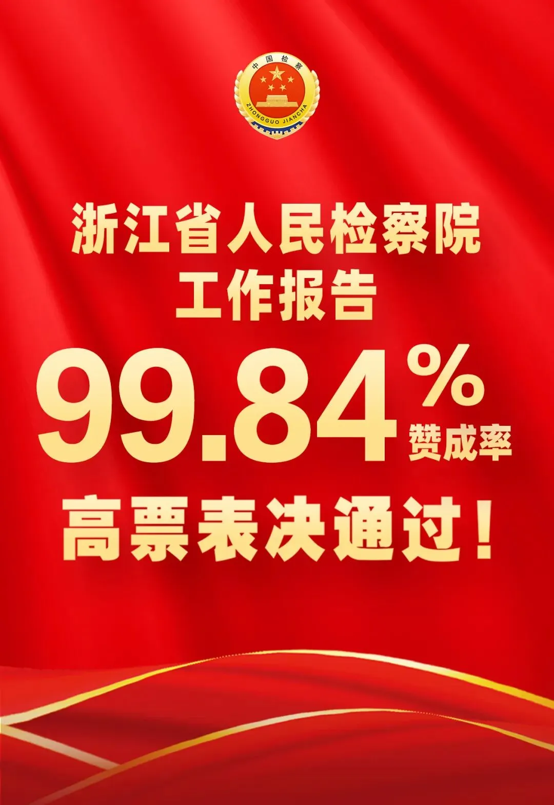 1月26日,在浙江省十四届人大二次会议上,经会议表决,《浙江省人民检察院工作报告》以99.84%的赞成率高票获得通过!