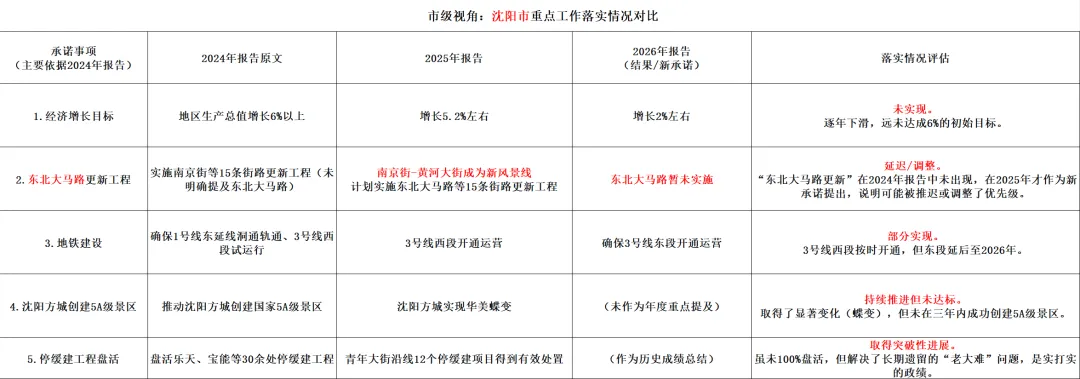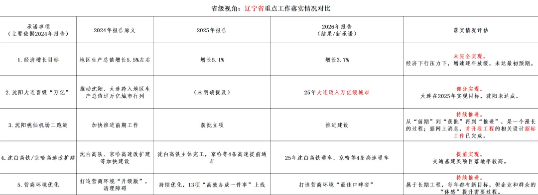 带着这个疑问,我翻了近三年辽宁省、沈阳市两级政府工作报告,梳理后发现:类似情况确实不算少。下面我从省级、市级两个视角做了简单汇总,并结合自己了解的情况,分析了背后的原因,具体可见下方的表格。