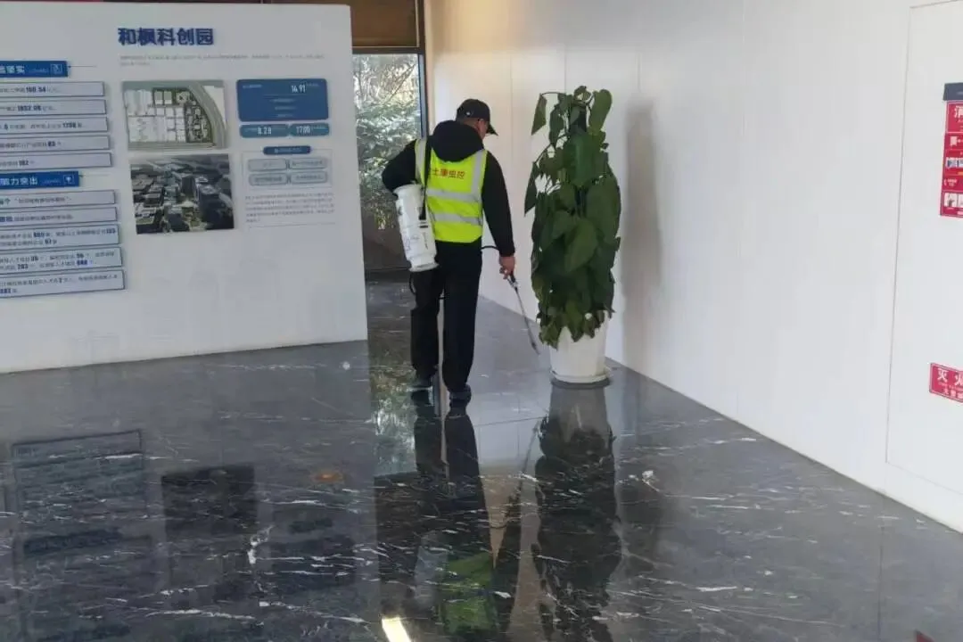 为筑牢办公区域卫生防线,有效预防病媒生物滋生与传播,物业服务中心定期开展专业 “四害”消杀工作。团队严格遵循科学防治、安全规范、精准高效的原则,全面清理积水、清运垃圾、整治卫生死角,从源头切断病媒生物繁殖途径。