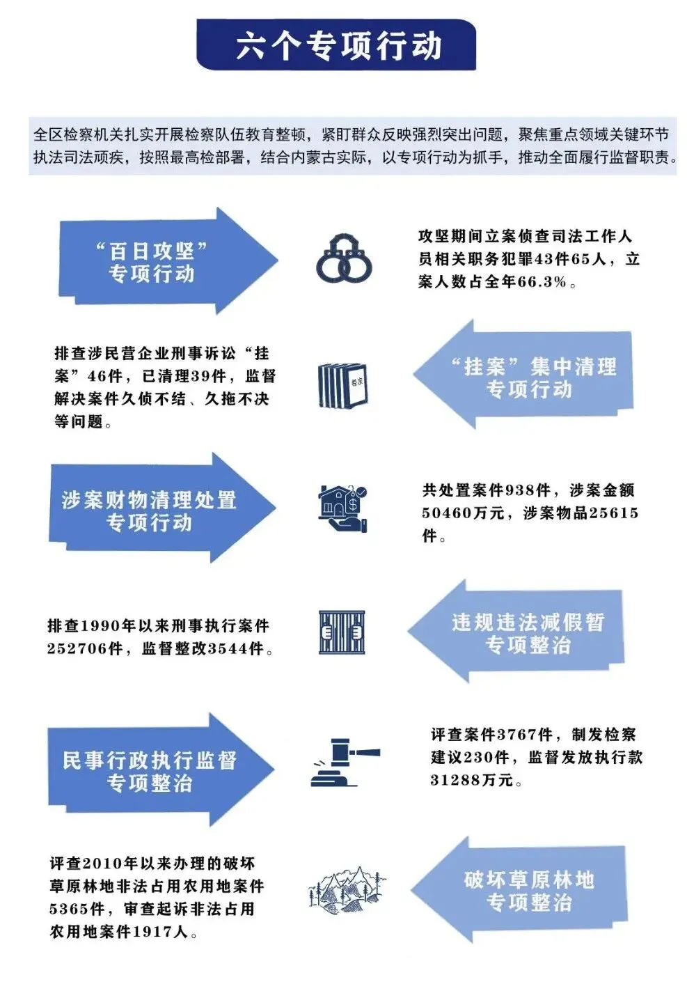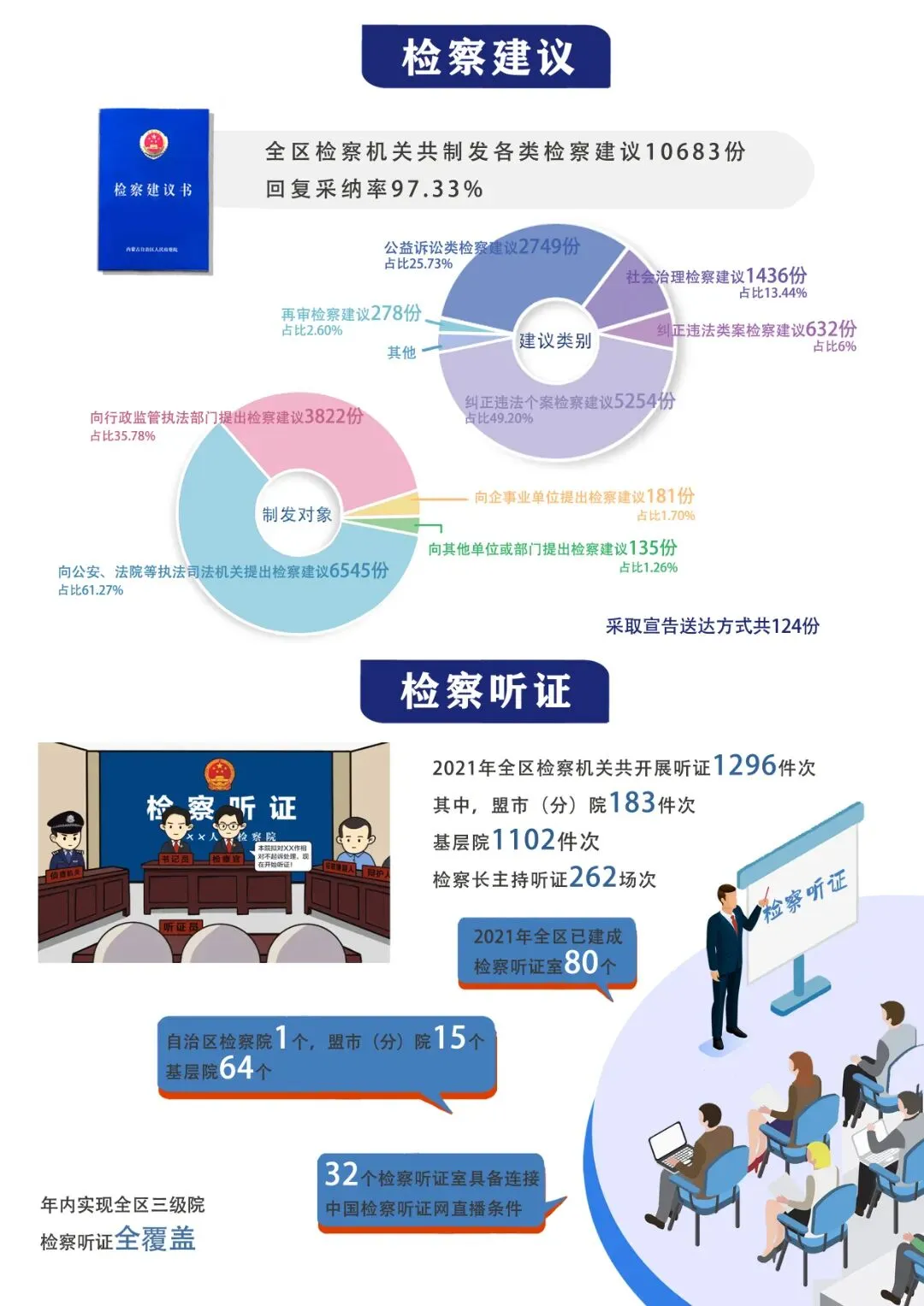 助推提升社会治理效能。推进诉源治理,28313件群众信访案件“件件有回复”,5437件信访案件“案结事了”。落实领导干部包案责任,清理化解信访积案911件。组织听证1296场,“开门办案”释法说理、化解矛盾,让公平公正可见可感。开展“法润草原”送法下基层活动,将2万多宣传册送到各族群众手中。实行法律监督年度报告制度,常态化公开办案数据,发布典型案例,引导动态防治。