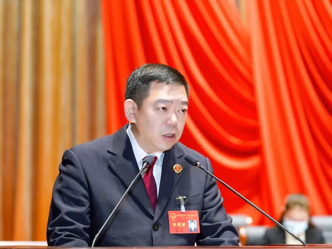 2月16日上午,在杭州市钱塘区第一届人民代表大会第二次会议上,杭州市钱塘区人民检察院检察长钱铖向大会作检察工作报告。
