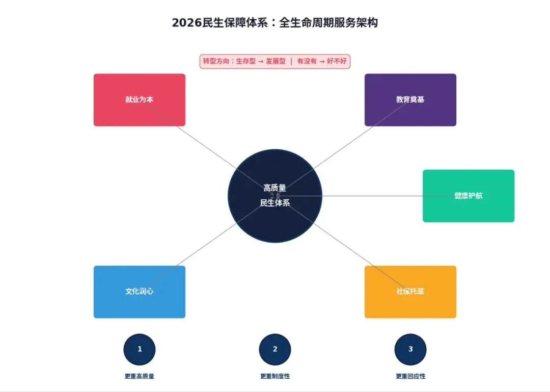 构建“就业为本、教育奠基、健康护航、社保托底、文化润心”的全生命周期民生体系。
