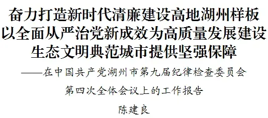 我代表中国共产党湖州市第九届纪律检查委员会常务委员会向第四次全体会议作工作报告,请予审议。