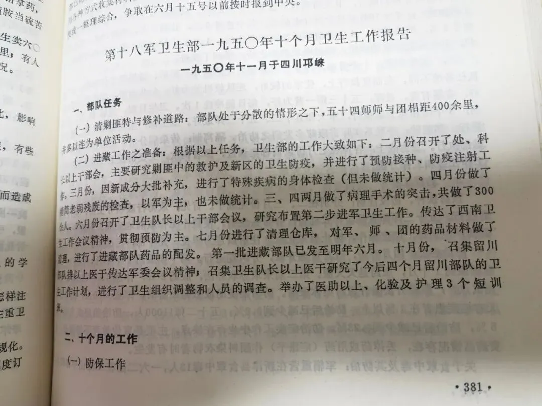 这是我的父亲在当年担任第十八军后勤部副部长兼18军首任卫生部长时做的工作体现。(父亲的18军后勤部副部长职务是在后来干部履历表上正式出现的)那年他32岁,是卫生专业干部。他和英雄的十八军挺进西藏,为和平解放西藏做出贡献。他们是站得最高的成建制的野战军,是唯一的。老爸做这个报告时,正是我出生的时候。