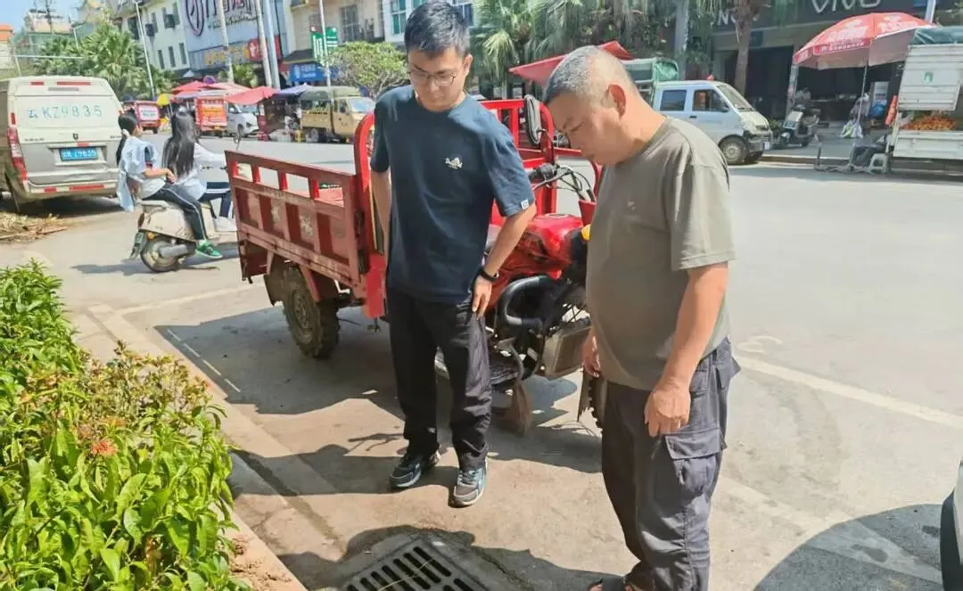4月8日,综合行政执法队到镇区街道处理12345工单关于雨水井异味问题。