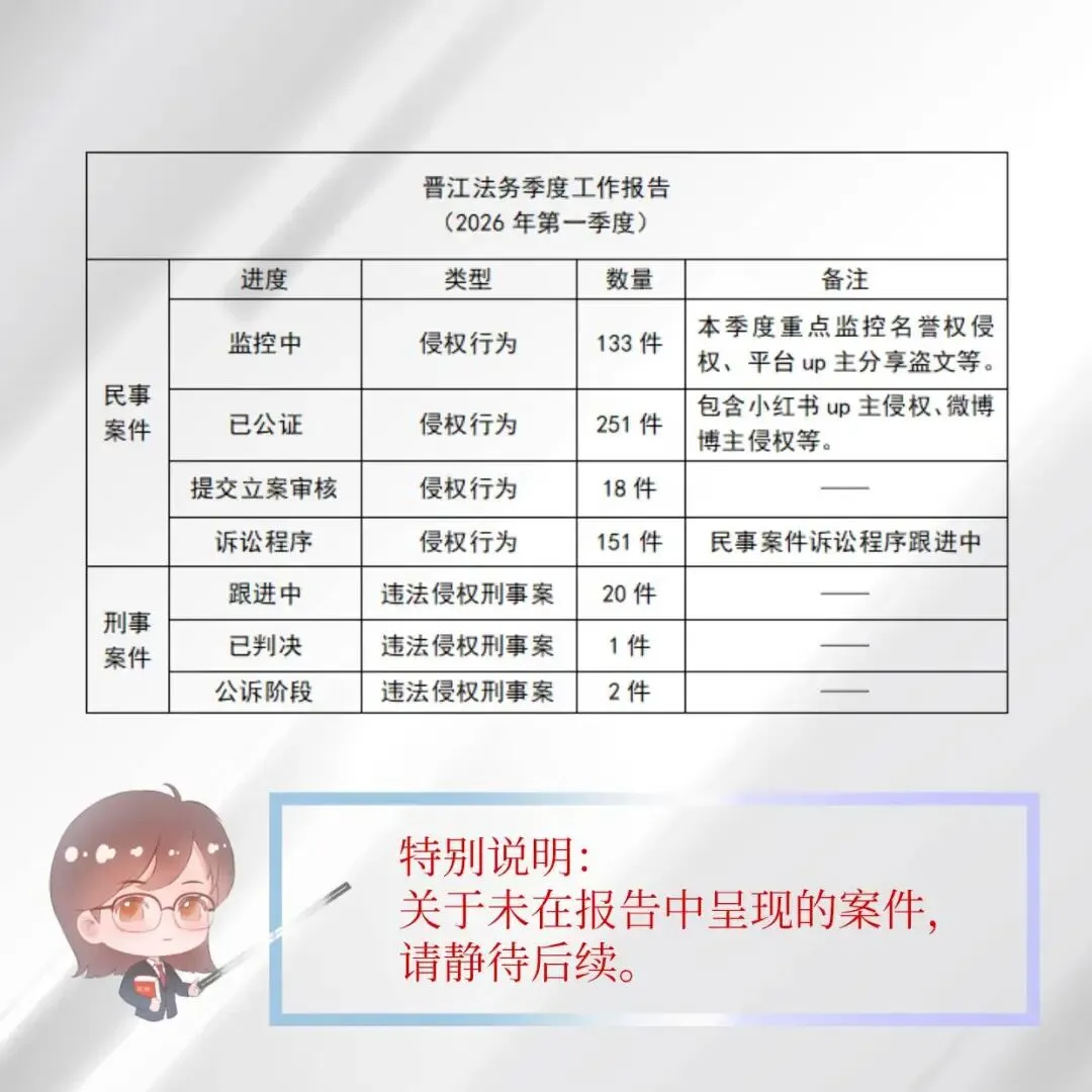 ▶晋江法务在行动 | 法务打击侵权行为季度工作报告(2025年第四季度)