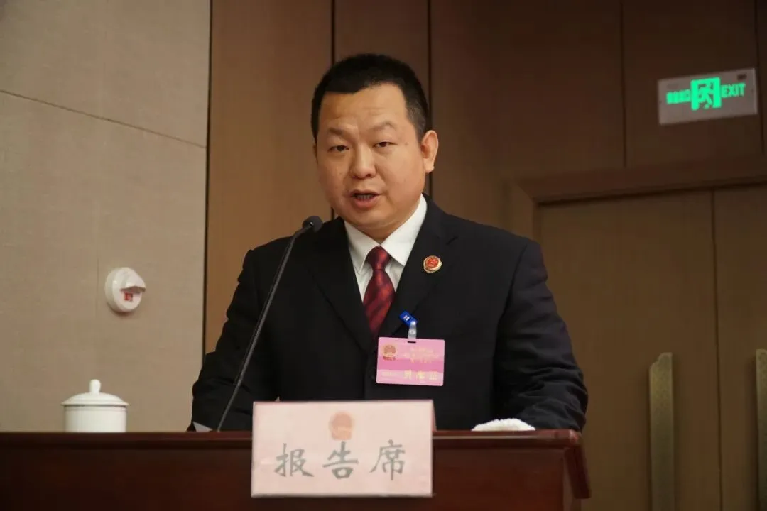 2022年1月7日上午,黄山区人民检察院负责人来亮在黄山区第九届人民代表大会第一次会议上向大会作检察工作报告。