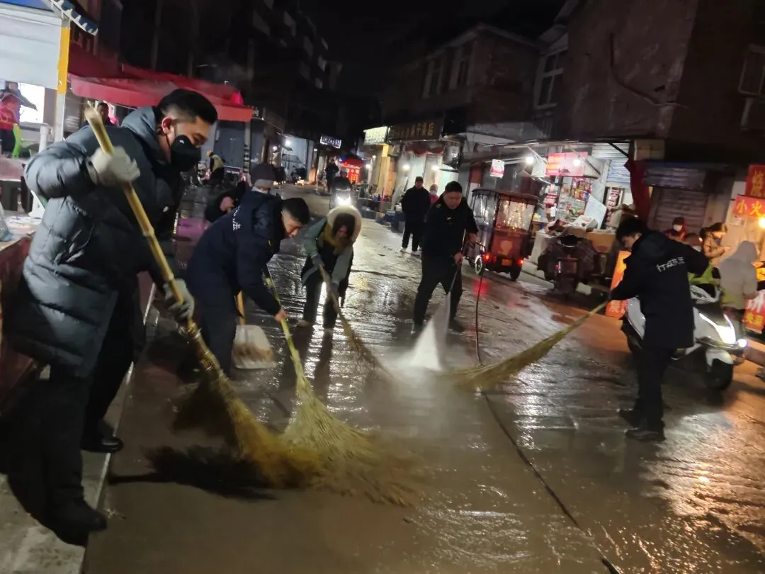 铁西街道综合行政执法大队长李冰洋带领城管科、飞机场社区解决中同南街自来水管爆管问题,并清理道路泥水。