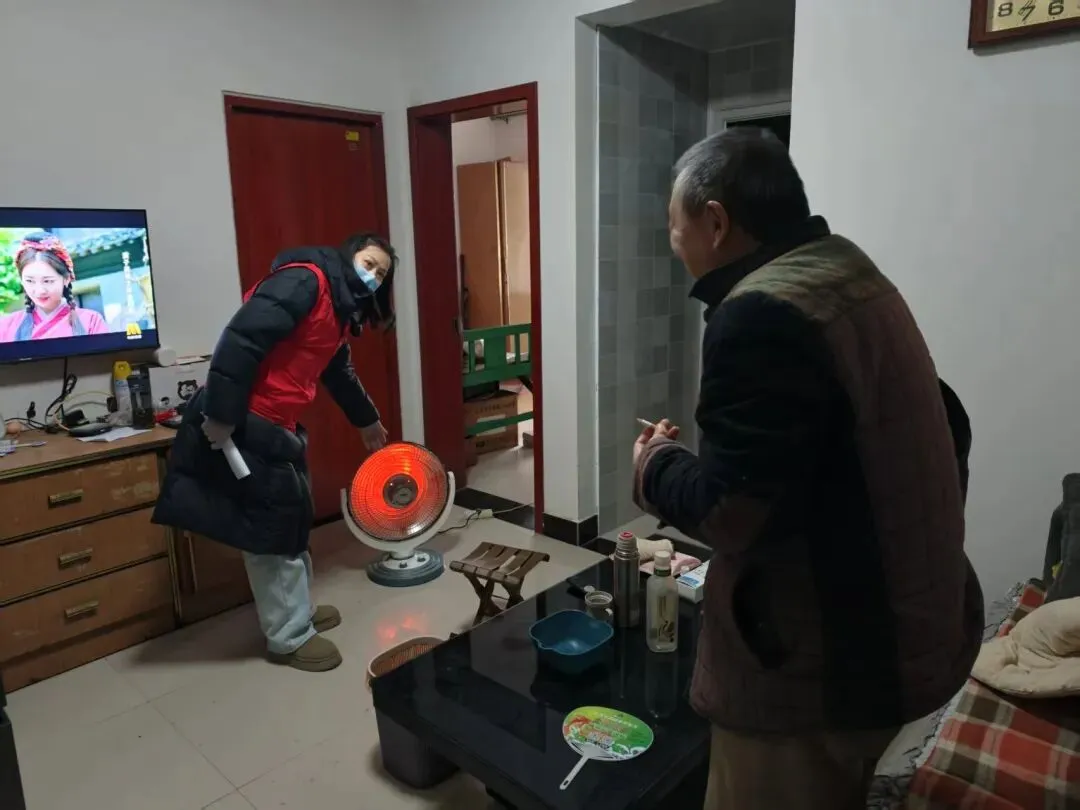 ●铁西街道飞机场社区到辖区独居老人家查看消防安全,提醒降温天气注意用气用电安全。